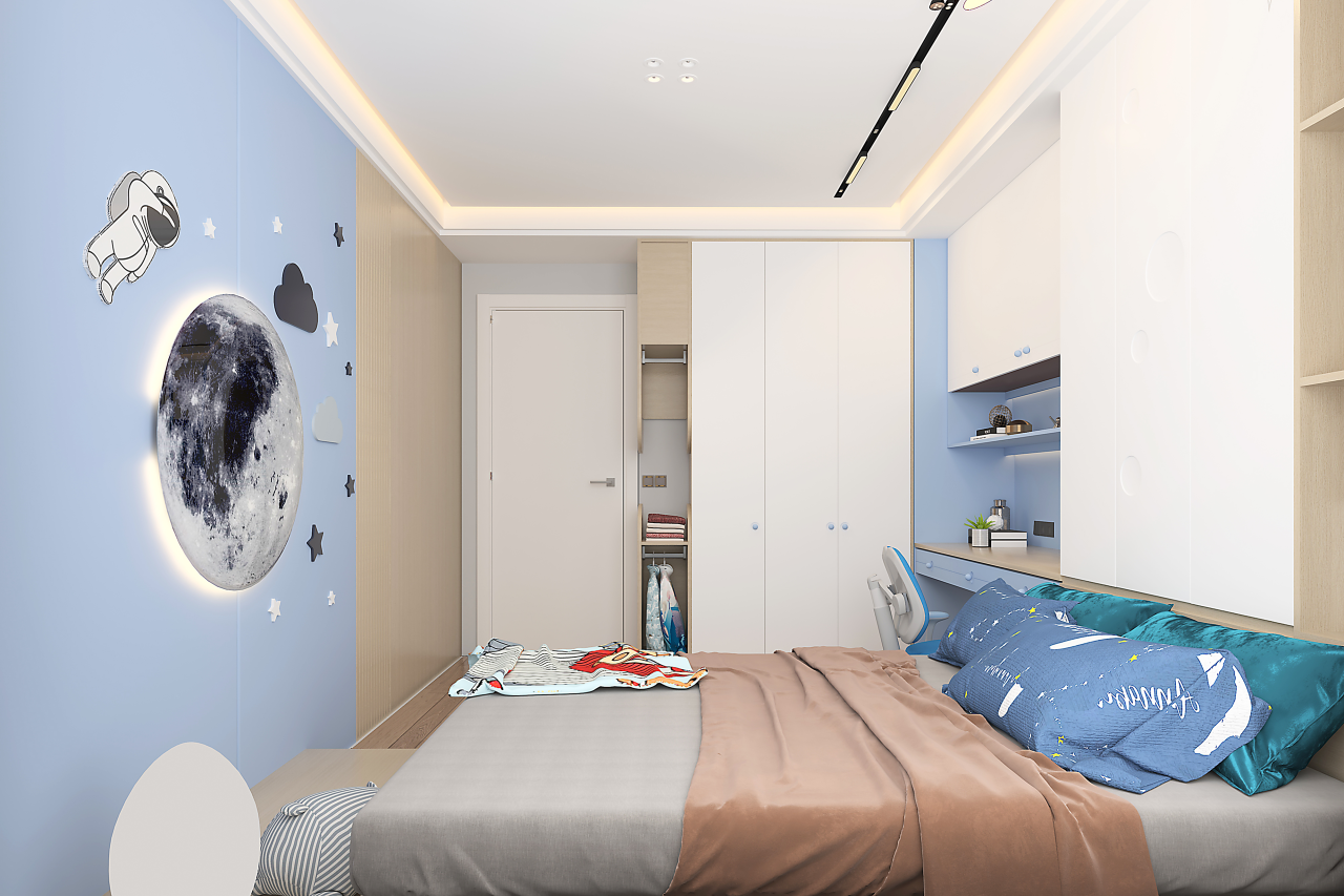 在惯性思维里,儿童房只需在次卧放张床,然后加点童趣元素,最后规划好衣柜、书架就能一劳永逸。